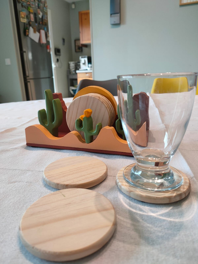 - Accessoire : Vendu avec ses 6 dessous de verre assortis.